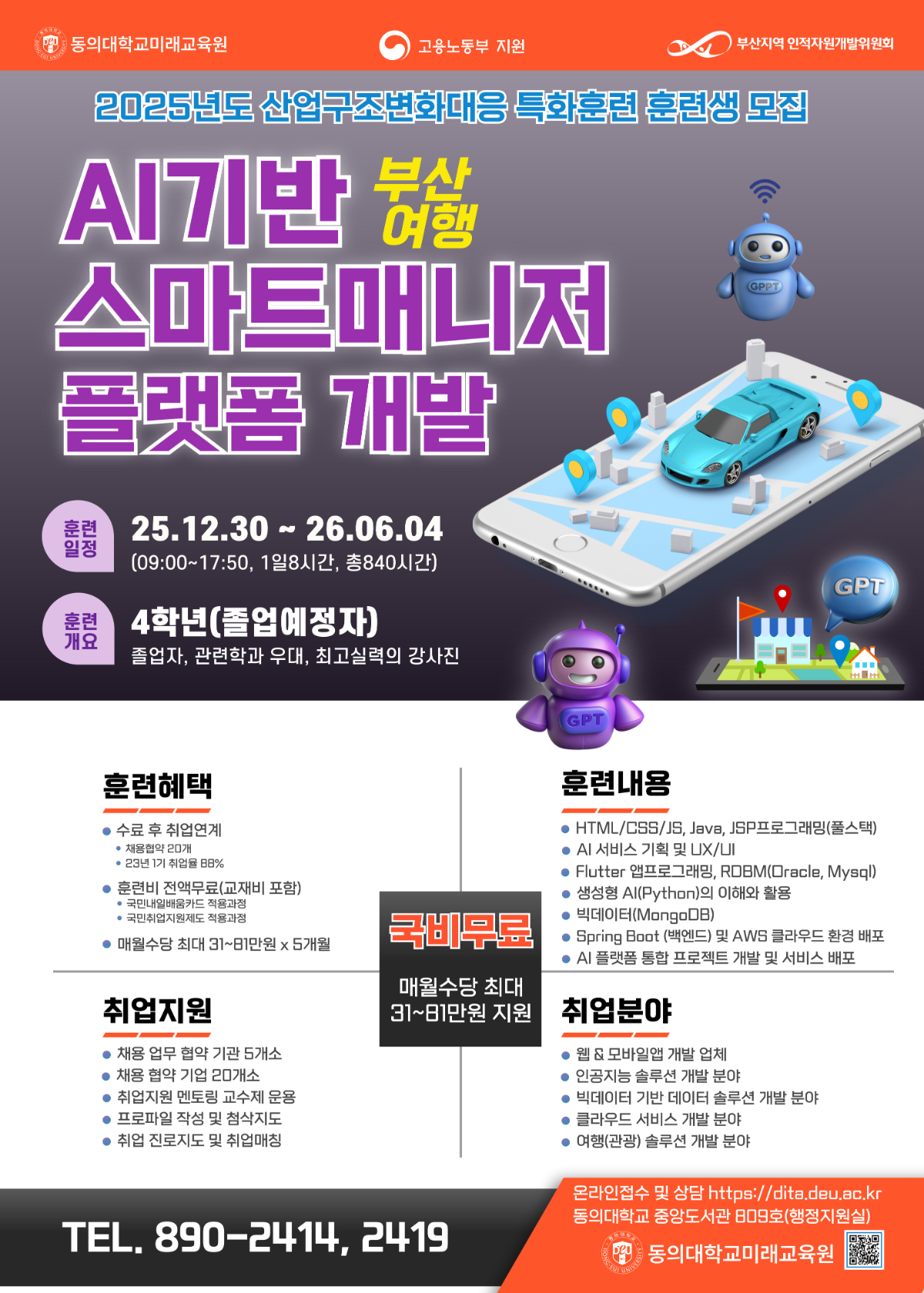 [미래교육원] 국비무료_AI기반 부산여행 스마트매니저 플랫폼 개발과정 훈련생모집